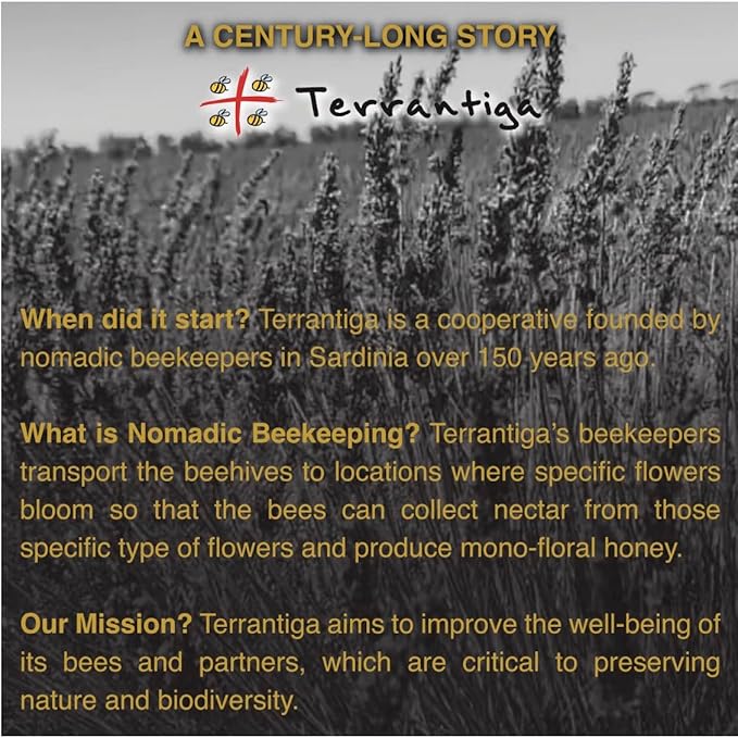 - Blackberry Flowers Organic Raw Honey, produced by a small cooperative of artisanal producers, directly imported from Sardinia, Italy