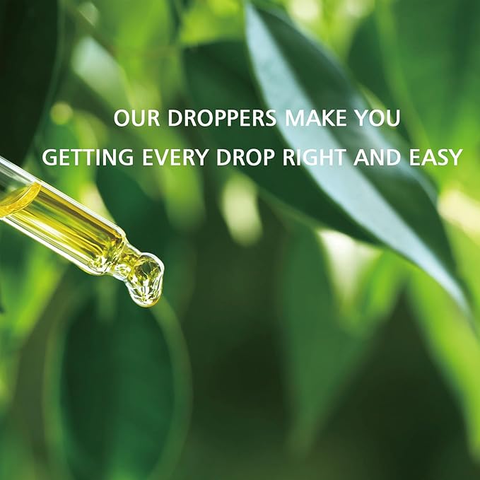 - Amber Glass Bottle with Dropper: All of our essential oils are bottled in U/V resistant amber glass bottles to protect the oil from UV rays, exposing to heat, light, and oxygen. Each bottle included an easy use dropper, you can get the exact amount of oil without any waste