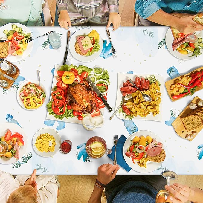 - SUITABLE FOR EVERY OCCASION: Whether you're hosting a baby shower party, gender reveal party, baby welcome party, birthday party, baby's first birthday, house party or any other themed party, our baby boy themed tablecloths are perfect for you. These blue watercolor themed disposable party tablecloths are not only suitable for the dining table, but can also be used as picnic blankets, wall hangings, or even unique gift wrapping for the one you love.