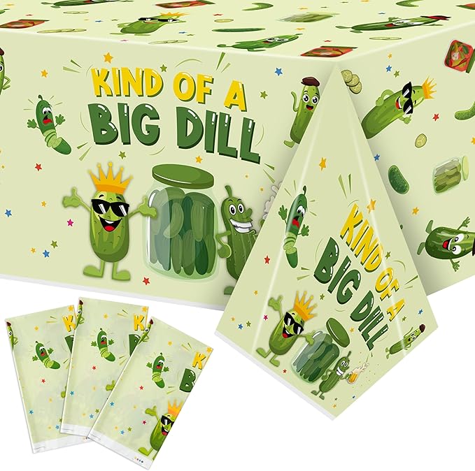 - SUITABLE FOR EVERY OCCASION: Whether you're hosting a pickle themed party, a fruit themed party, a birthday party, Christmas or any other party, our cucumber birthday tablecloths are perfect for you. These pickle themed one-off party tablecloths are not only suitable for the dining table, but can also be used as picnic blankets, wall hangings, or even unique gift wrap for kids.
