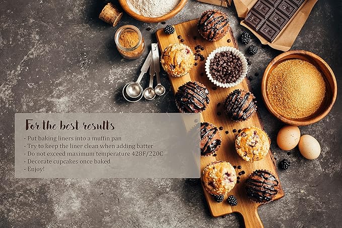 - ★PAPER MATERIAL★ The baking cups made from food-grade paper and prints, biodegradable and safe to use. Protect and increase muffin storage time.