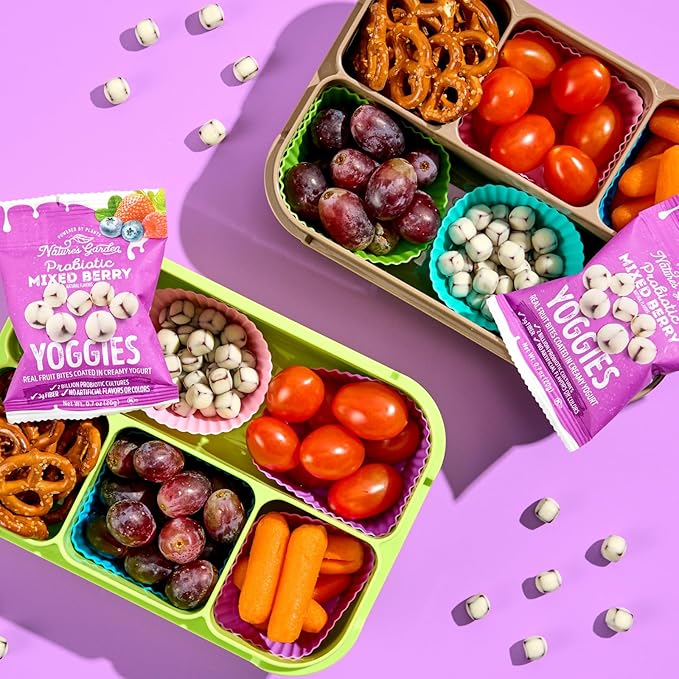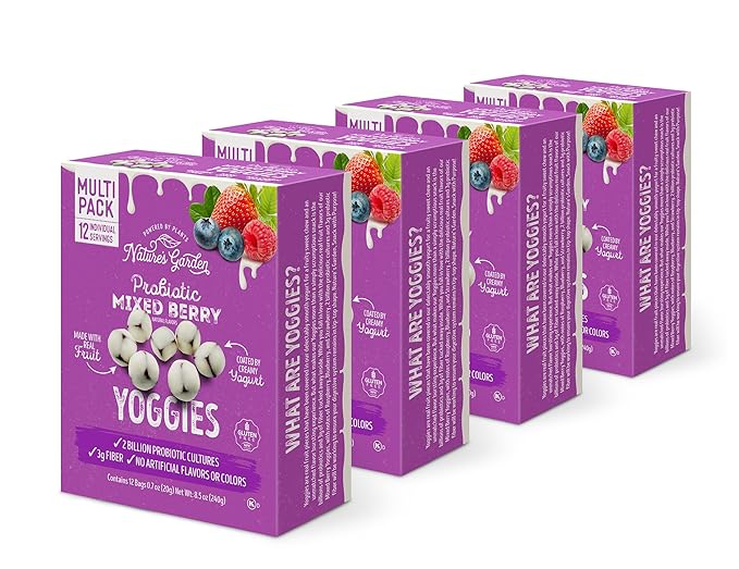 Nature's Garden Probiotic Mixed Berry Yoggies 12 x 0.7oz (Pack of 4) Yogurt Covered Fruit Snacks, High Fiber, Real Fruit Pieces, Office Snack Variety Packs For Adults, No Artificial Flavors or Colors, Gluten Free