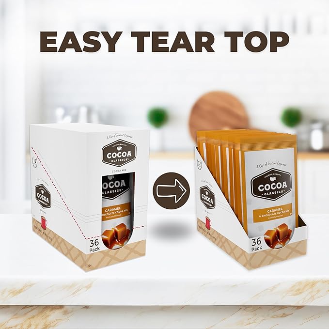 Cocoa Classics Caramel Cocoa Mix Hot Chocolate Made with Nonfat Milk Just Add Hot Water Make Hot or Iced Cocoa Gluten Free & Kosher Dairy Friendly 1.25oz Packets (Pack of 36)