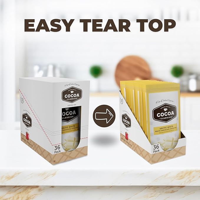 Cocoa Classics Arctic White Cocoa Mix, Hot Chocolate, Made with Nonfat Milk, Just Add Hot Water, Make Hot or Iced Cocoa, Gluten Free, 1.25oz Packets (Pack of 36)