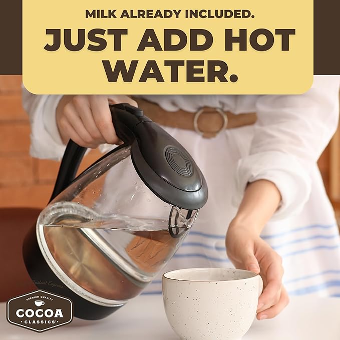 - MADE WITH REAL MILK: Our hot chocolate mixes are made with nonfat dry milk, leaving you with only one task. Just add hot water and watch Cocoa Classics instantly dissolve into a rich and creamy treat!