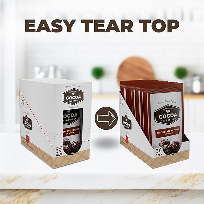 Cocoa Classics Chocolate Supreme Cocoa Mix, Hot Chocolate, Made with Nonfat Milk, Just Add Hot Water, Make Hot or Iced Cocoa, Gluten Free & Kosher Dairy Friendly, 1.25oz Packets (Pack of 36)