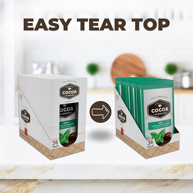 Cocoa Classics Mint Cocoa Mix, Hot Chocolate, Made with Nonfat Milk, Just Add Hot Water, Make Hot or Iced Cocoa, Gluten Free & Kosher Dairy Friendly, 1.25oz Packets (Pack of 36)