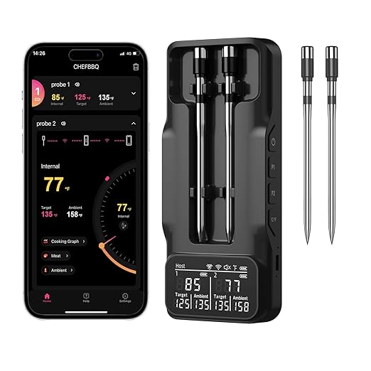 - Instantly Alerts Reminder: You can view the cooking thermometer on the host display screen without using a smart APP. You can also monitor cooking time, set desired temperature, and receive alerts through the CHEFBBQ APP on your phone.