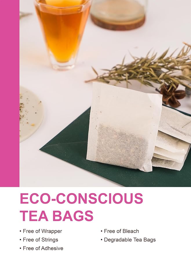 - [50 COUNT ECO-CONSCIOUS TEA BAGS] - Our premium tea bags are made from non-GMO plant fiber, and tea bags are compostable. No string and no tag. No extra waste - just healthy & delicious tea!