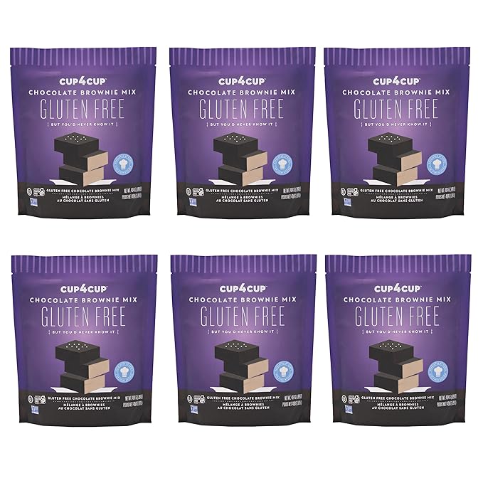 - Contains 6 packs of 14.25-ounce Cup4Cup Chocolate Brownie Mix bags. One bag makes one 8 x 8-inch pan of brownies