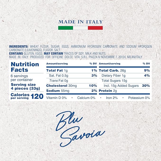 - Authentic Italian: Expertly baked for the ideal balance of crispiness and softness, these Italian biscuits are ideal for classic desserts like tiramisu or as a luxurious side to your coffee.