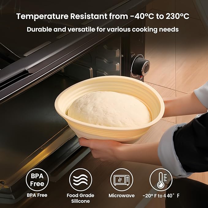 - 【Food Grade Silicone】Our silicone bread proofing basket is made of food-grade silicone, ensuring safety and environmental friendliness. The silicone material is durable and perfect for dough fermentation, suitable for long-term use, providing you with a professional baking experience.