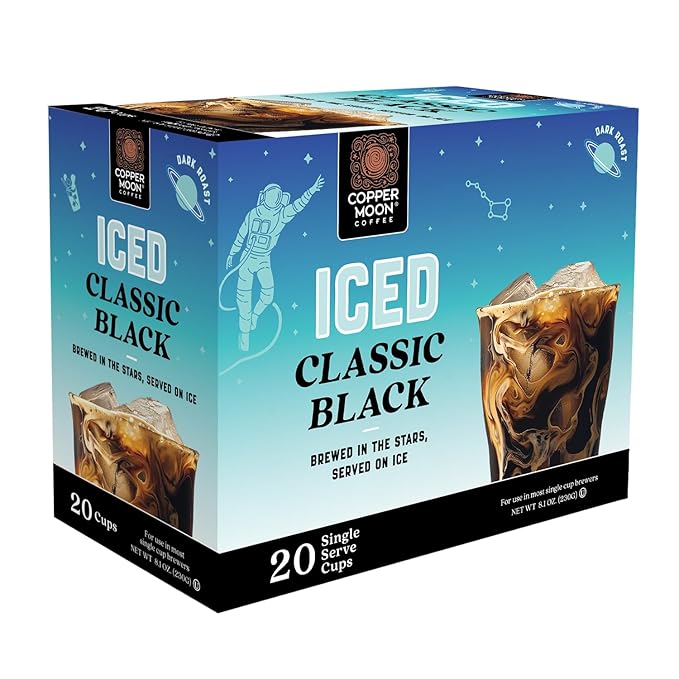 Copper Moon Single Serve Coffee Pods for Keurig K-Cup Brewers, Classic Black Brew Over Ice, 20 Count