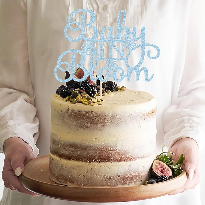 - HIGH QUALITY MATERIALS - This baby in bloom baby shower cake topper features a light blue flash that shines from every angle. Made of 350 gram Glitter card stock and high grade bamboo stick, pre installed in advance, is protected by thick cardboard, not easy to deform and fade. This welcome baby sign cake decoration will make your baby shower or gender reveal party shine brightly