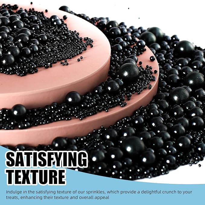 Kasvan Black Pearl Sprinkles, 6 Sizes Mix for Cake Decorating, 230g/8.1oz, Baking Cake Decorations, Ice Cream Toppings and Cookie Decorating, Wedding Party Chirstmas Supplies (Black)