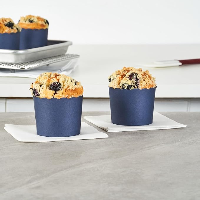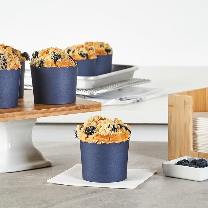 - SUSTAINABLE OPTION: Great for ecologically-conscious bakers! These disposable baking cups are made from sustainable paper and the midnight blue finish blends in with any type of cupcake decoration.