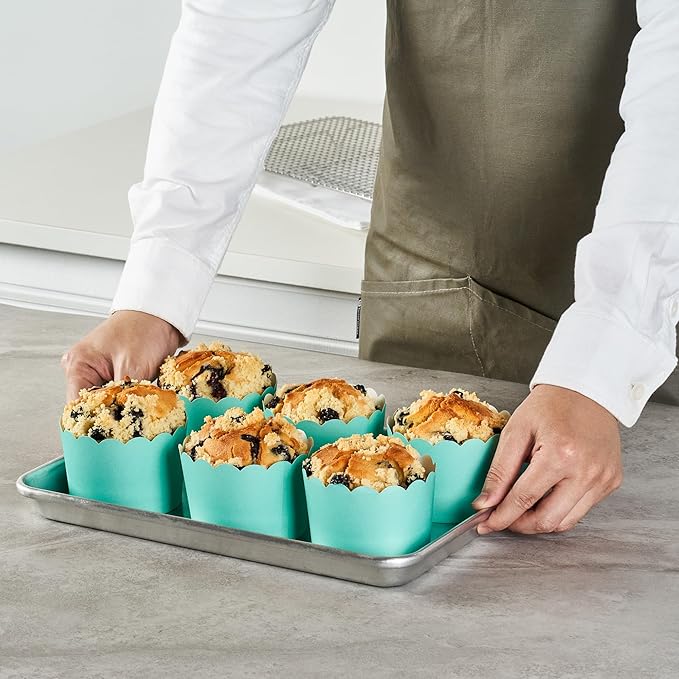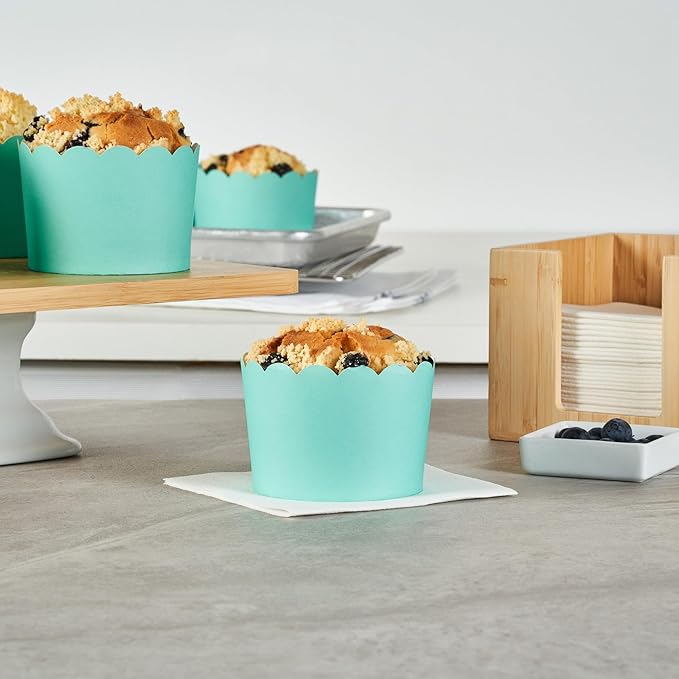 - SUSTAINABLE OPTION: Great for ecologically-conscious bakers! These disposable baking cups are made from sustainable paper and the turquoise finish blends in with any type of cupcake decoration.