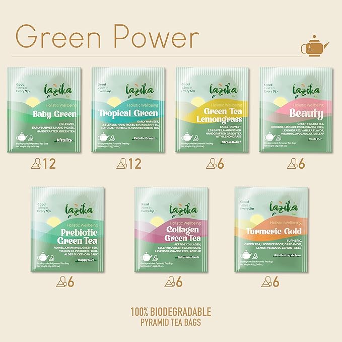 - FRESHLY BLENDED AND CAREFULLY PACKAGED: Lazika assorted tea variety packs are crafted from the freshest ingredients, ensuring a superior taste. Each pyramid tea bag is meticulously prepared and hygienically packaged to preserve its quality and flavor.