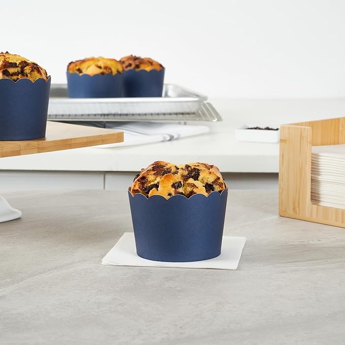 - SUSTAINABLE OPTION: Great for ecologically-conscious bakers! These disposable baking cups are made from sustainable paper and the midnight blue finish blends in with any type of cupcake decoration.