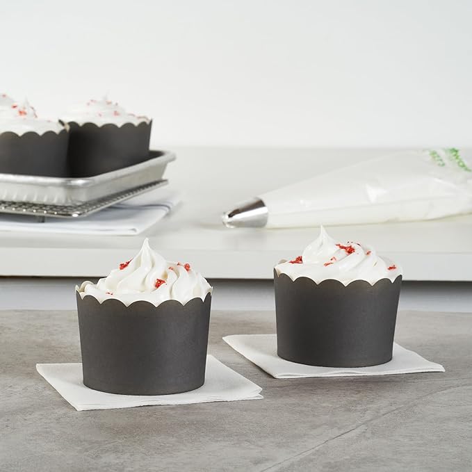 - STYLISH LOOK: These cupcake wrappers have scalloped edges that perfectly complement and add an adorable touch to your cupcakes and muffins. Stand-alone design to streamline your baking process!