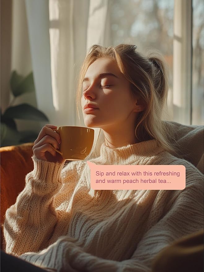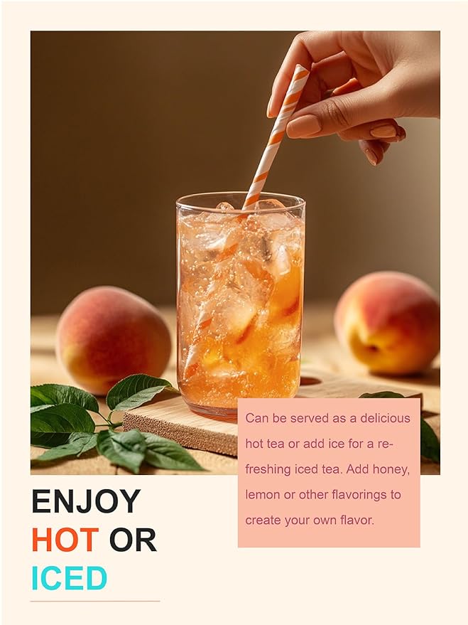 - [FLAVORFUL & AROMATIC] - Peach herbal tea is a delicate blend of fruity rosehips with tart hibiscus, soothing chamomile, and sweet tea, it has fruity and sweet flavor with a hint of floral or herbal notes, creating a refreshing and soothing beverage.
