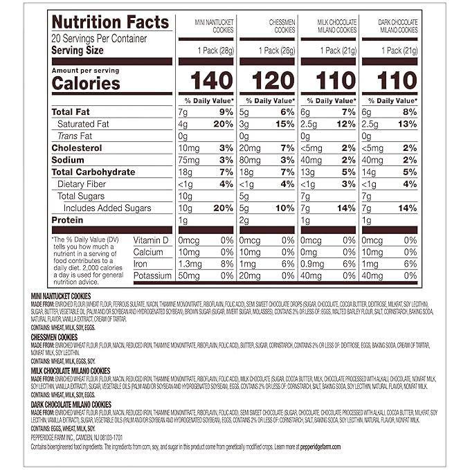 - Includes one (1) box of 20 snack packs of Pepperidge Farm cookies