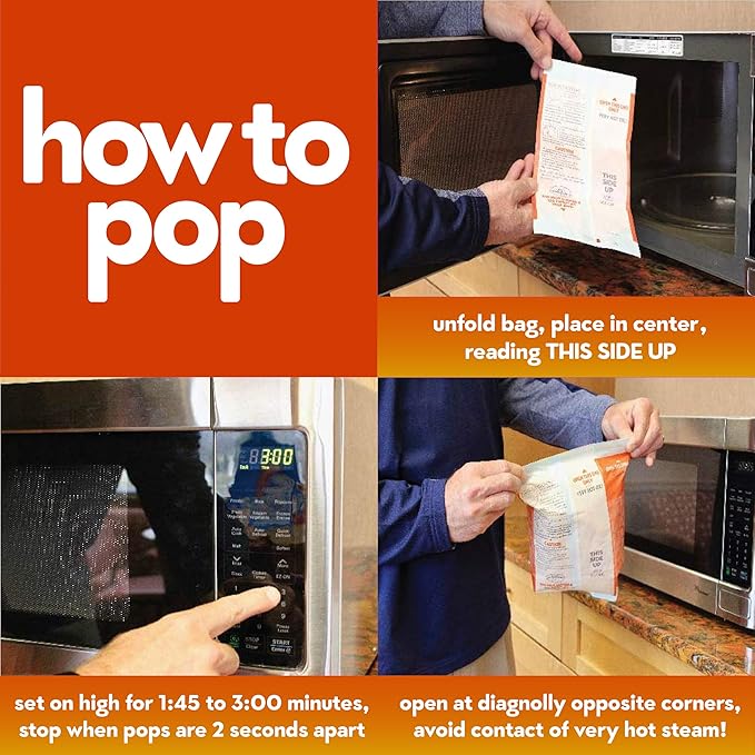 - Get five 6pk cartons of microwave popcorn. (1) Blast O Butter, (1) The Big Cheez, (1) Kettle Corn, (1) White Cheddar, and (1) Simply Popped Butter
