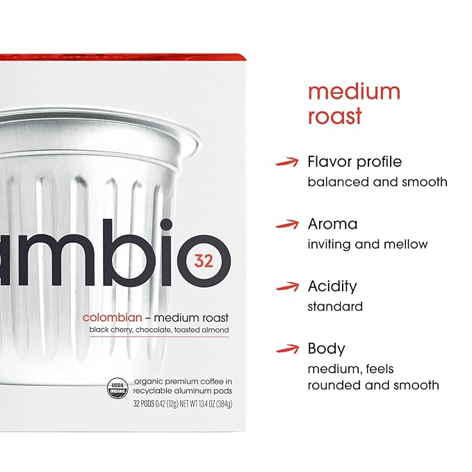 - Organic Colombian Coffee Pods: Start your day with a medium roast coffee kcup from Cambio Roasters, featuring lush notes of fruit, sweet milk chocolate, black cherry and toasted almonds to balance the flavor across each sip.