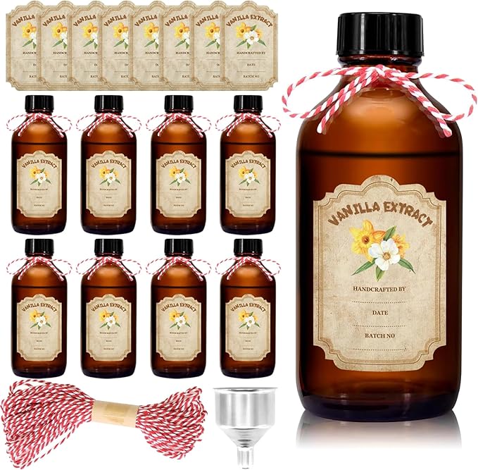 - 【Useful Accessories】The package include: 8 pieces of 8oz amber glass bottles, comes with 8 pieces of stickers, a funnel for easy dispensing, a roll of red and white cotton rope, such a nice combination to meet your needs