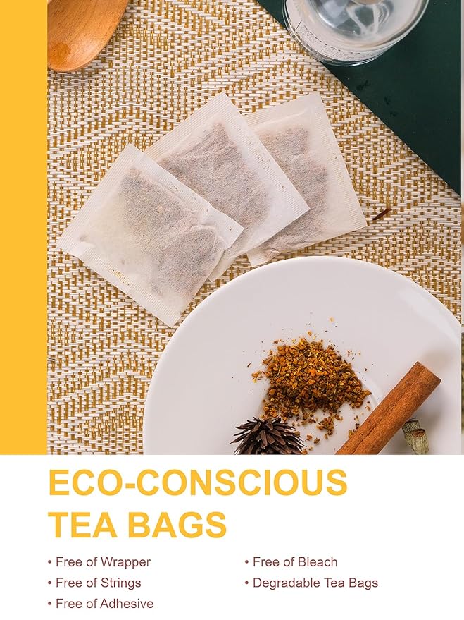 - [100 COUNT ECO-CONSCIOUS TEA BAGS] - Our premium tea bags are made from biodegradable non-GMO plant fiber. No string and no tag. No extra waste - just healthy & delicious tea! Enjoy this tea hot or iced, with or without added honey or lemon, to suit your personal preferences.
