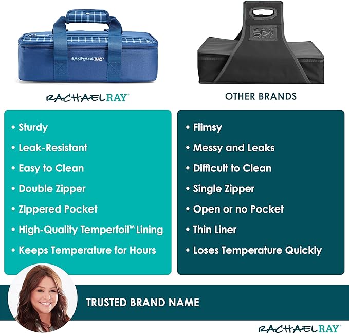 Rachael Ray Lasagna Lugger, Thermal Insulated Casserole Carrier for Hot or Cold Food, Lugger Tote for Potluck, Parties, Picnic, and Cookouts, Fits 9" x 13" Baking Dish
