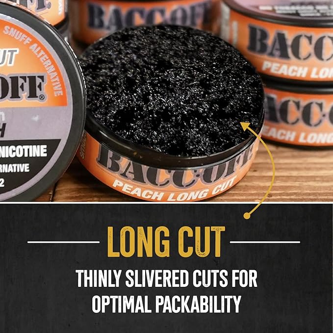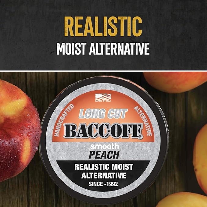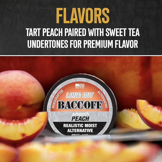 1 Can, BaccOff, Smooth Peach Long Cut, Sweet Tea Base with Tart Peach Undertones, Realistic Moist Alternative