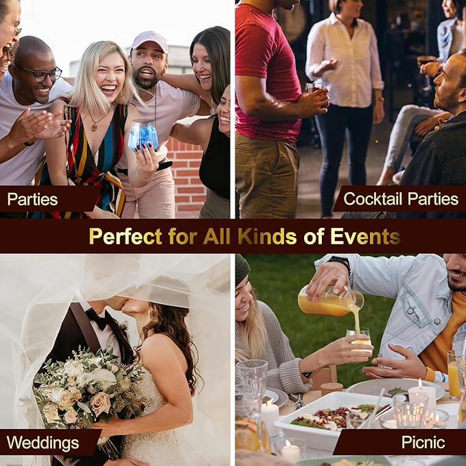- 【Perfect for All Celebrations】The plastic wine cup can match any color beverage, perfect for wine, champagne, juice, cocktail, and various mixed drinks. Perfect for indoor and outdoor functions, catering, corporate events, barbecues, birthday parties, weddings, picnics, and more!