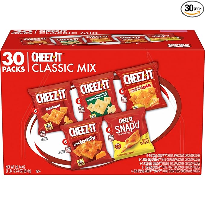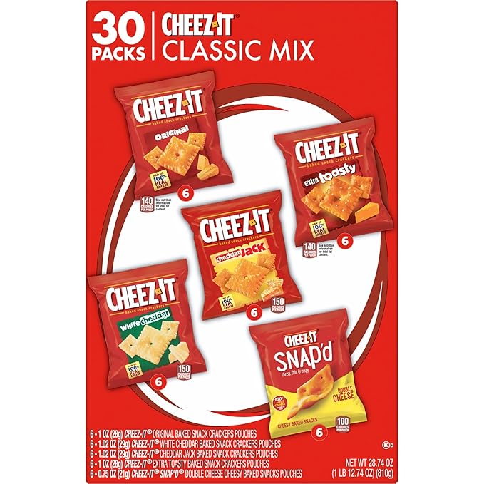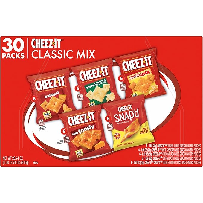 Cheez-It Cheese Crackers, Baked Snack Crackers, Office and Kids Snacks, Variety Pack, 28.74oz Box (30 Packs)