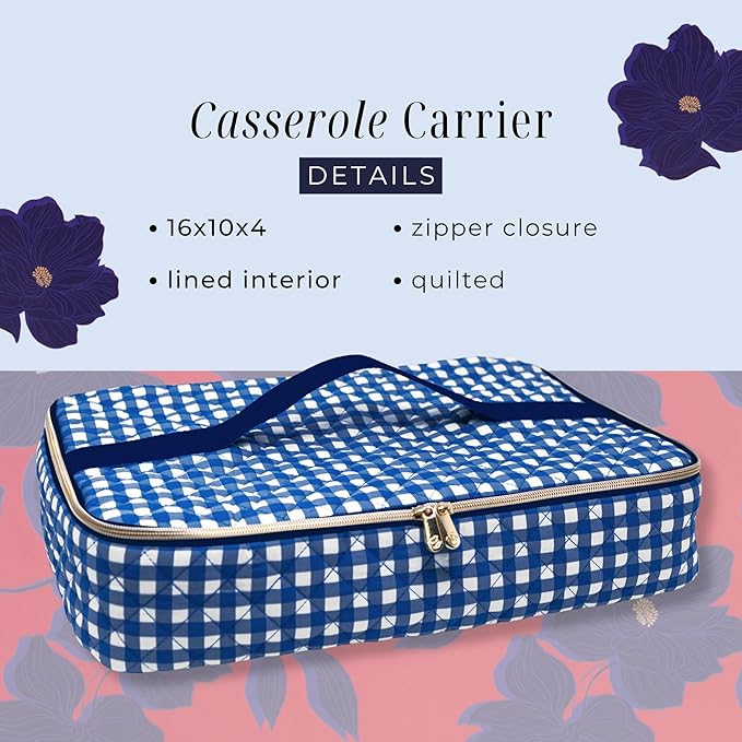 Draper James Insulated Casserole Carrier for Hot and Cold, Quilted with Handle for 16x10 Pan, Riviera Blue Gingham