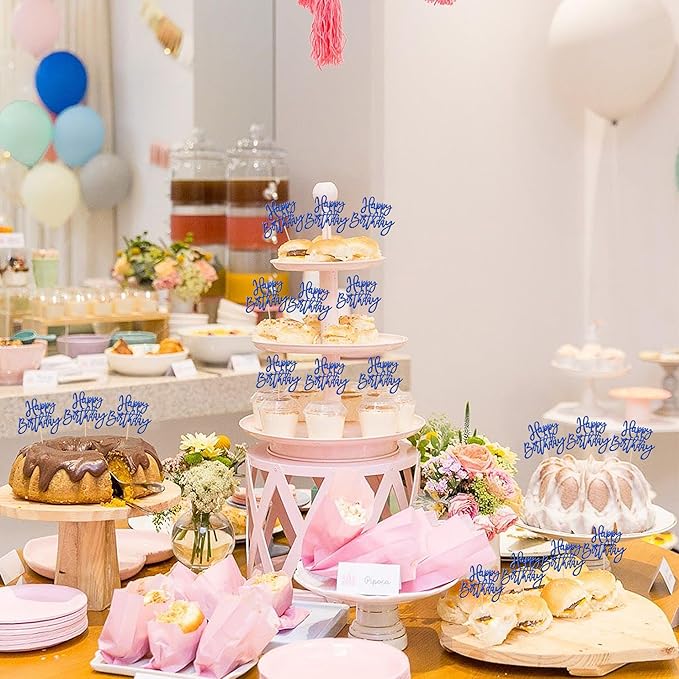 24 PCS Happy Birthday Cupcake Toppers Glitter Picks for Celebrating Anniversary Theme Party Cake Decorations Supplies Dark Blue