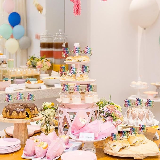 24 PCS Glitter Cupcake Toppers - Happy Birthday & Anniversary Picks for Celebrating Parties - Colorful
