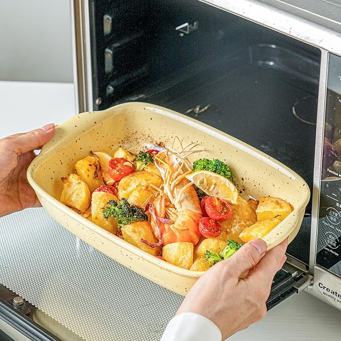 - 【SPECKLE DESIGN】The rectangular baking dishes with small and delicate handles make them convenient for you to pick it up. Also, handmade speckle, nice color,smooth surface and good figure bring home modern lifestyle.
