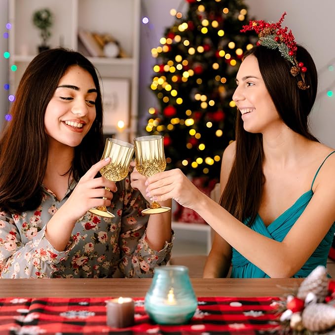 XUWAIDSGN 16 Pcs 7oz Plastic Vintage Wine Glasses Drinking Glasses Unbreakable Wedding Glassware Crystal Water Goblets Reusable Drinkware Vintage Champagne Flutes (16, Amber)