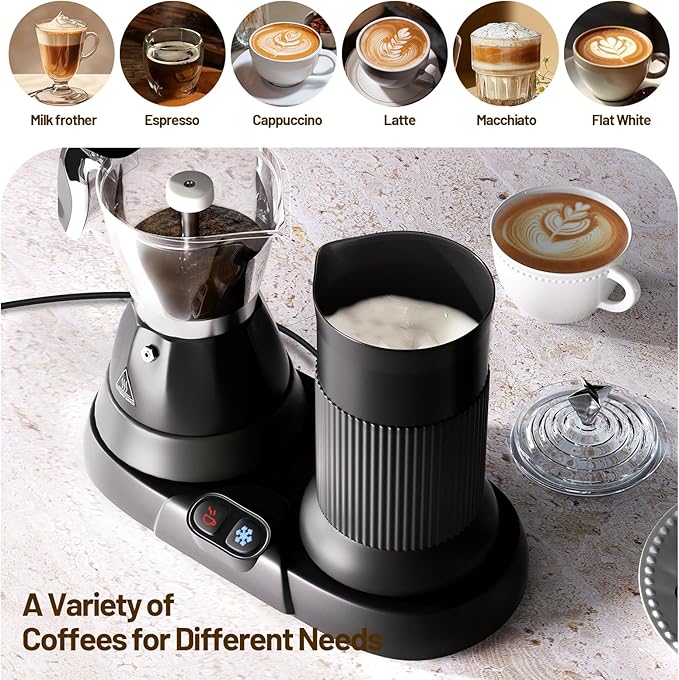 - Short Time-consuming: Only 3-5 minutes to make espresso, 2-3 minutes to make dense milk froth, save your time!(110V)