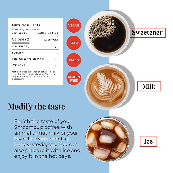 - NO MUSHROOM TASTE: Smooth and enjoyable, our 10 mushroom coffee mixed with Ashwagandha and Shilajit tastes just like regular coffee with no mushroom or earthy taste. It is a great addition to your diet, whether it’s Keto, Paleo, Gluten-Free or Vegan. 100% natural ingredients and zero sugar!