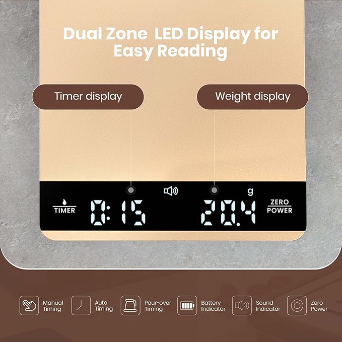 - 【Three Timing Modes & Units Conversion】 The Maestri House Digital Timer Scale offers three units of measurement (g/oz/ml), easily convertible at any time. The scale features three built-in timing modes: manual, automatic espresso, and new automatic pour-over mode. These modes let you time your coffee brewing process with accuracy, ensuring your coffee is always brewed to perfection, tailored to your taste preferences
