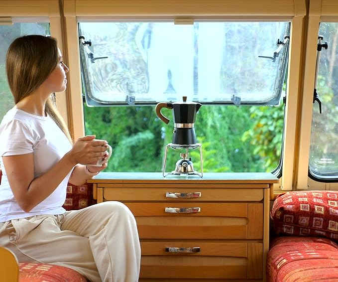 - [6 ESPRESSO CUPS PER BREW] – Craft barista-style coffee for family brunches or camping trips. Perfect for 6 espresso servings (not mugs). Compatible with gas, electric & propane stoves (induction adapter sold separately)