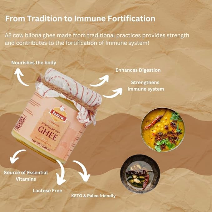 Indicow A2 Desi Cow Ghee, Clarified Butter 180ml | Grass Fed Cows | (180ml (6.08oz), A2 Kankrej Cow Ghee) | Keto and Paleo Friendly| a2 ghee organic grass fed
