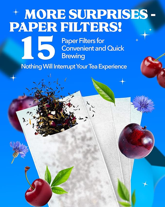 - Includes 15 Paper Filters – Enjoy the convenience of easy brewing with included filters, making every tea moment smooth and effortless.