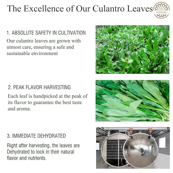 - ✔️ ADVANCED DRYING TECHNOLOGY: Processed using cutting-edge cold-drying technology, our culantro leaves retain maximum flavor and nutrients, ensuring freshness and vibrancy. Unlike traditional hot drying, our method guarantees superior quality and shelf life.