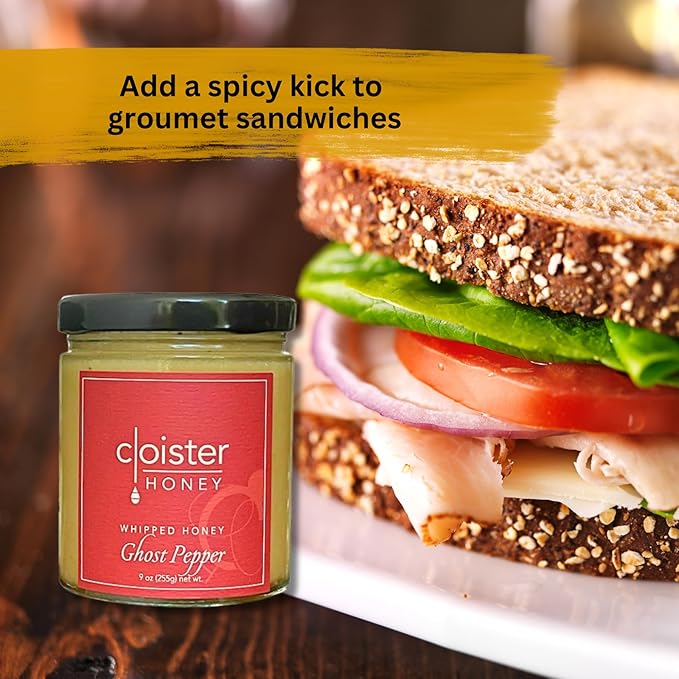 Cloister Honey Whipped Honey - Ghost Pepper (9 oz) | Hand Crafted | Raw Artisan Honey | 100% Pure, Raw & Unfiltered | All Natural | Made in USA |