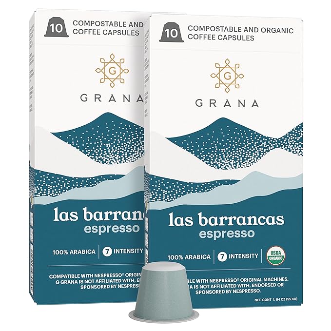 G GRANA Coffee Pods, Compatible with Nespresso OriginalLine, 20 Pack, Dark Roast, USDA Organic 100% Arabica Single Source Specialty-Coffee, Compostable Single Serve Capsules, Las Barrancas