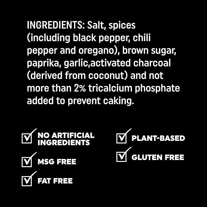 - Only the best ingredients: Our Holy Garlic seasoning is the perfect bbq seasoning of activated charcoal, pure ground chiles, black pepper, brown sugar, and loads of garlic (duh) leave standard garlic salt in the dust. Use it as a chicken seasoning, pork rub, potato seasoning, steak rub, burger seasoning, and vegetable seasoning. Barbecue rubs and spices for smoking with No Artificial Ingredients, Gluten Free, MSG Free, Fat Free, Plant-Based.