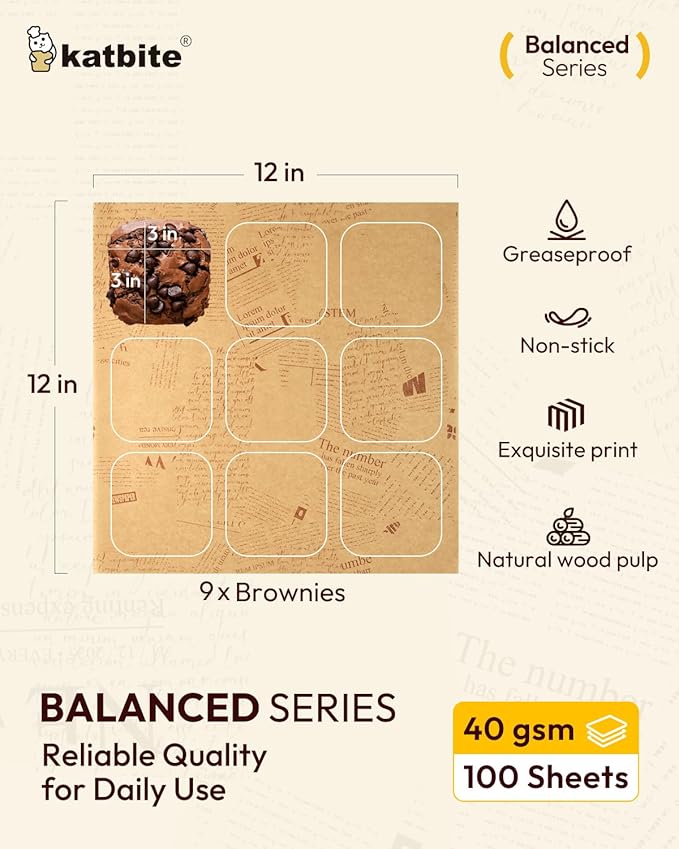 - Healthy & Natural: Certified by KOSHER and FSC, katbite parchment paper, part of the product, packaging and wrappings of paper are made from fsc-certified wood. Made from 100% natural wood pulp, our unbleached and fluorescent-free parchment paper ensures reliability without any safety concerns. Featuring food-grade silicone coating on both sides, these sheets provide a safe, non-toxic baking surface.Trust Katbite Balanced Series for a healthy, natural, and sustainable baking experience.